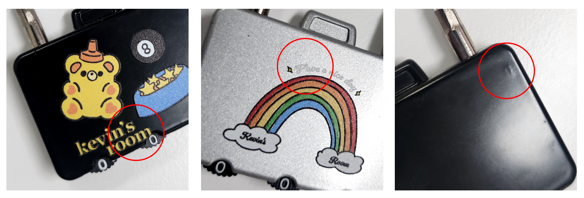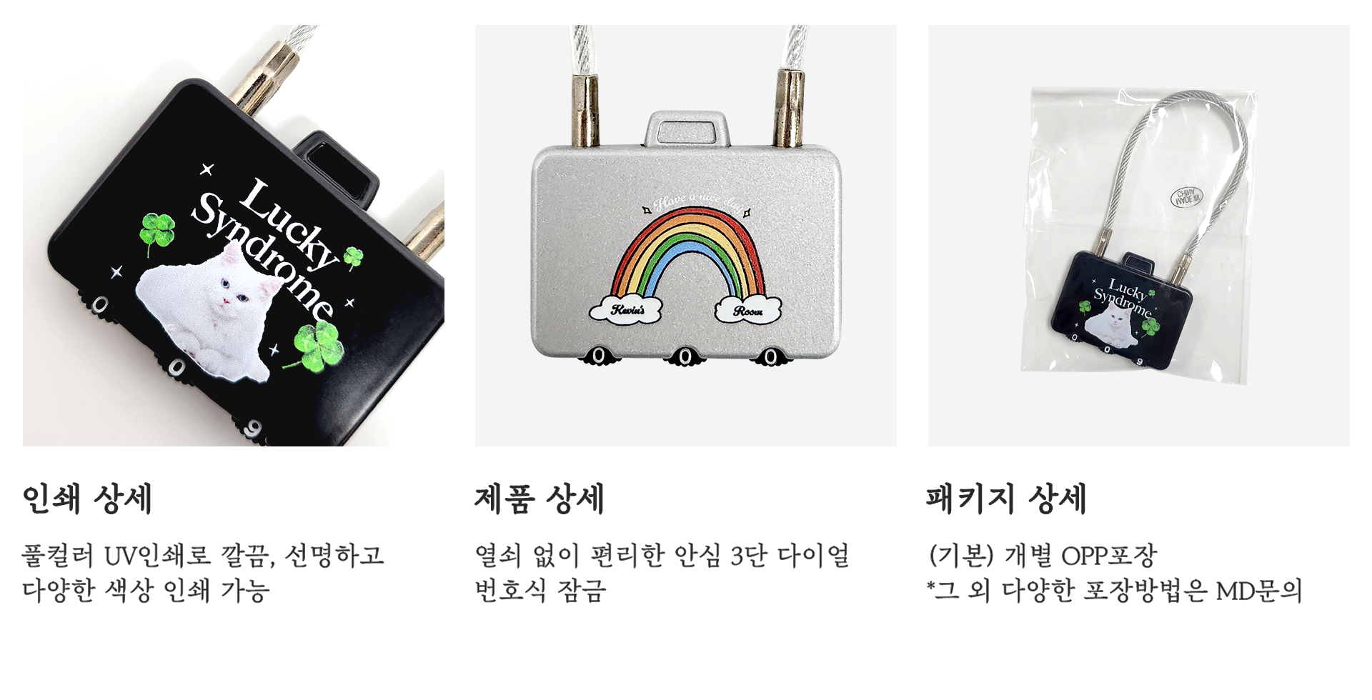 다양한 색상의 자물쇠에 풀컬러로 나만의 디자인을 인쇄할 수 있어요.