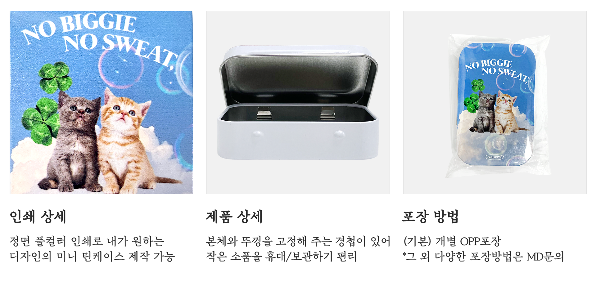 | 미니 틴케이스 | 60 x 95 x 20 mm | 60 x 95 mm 이내 |
