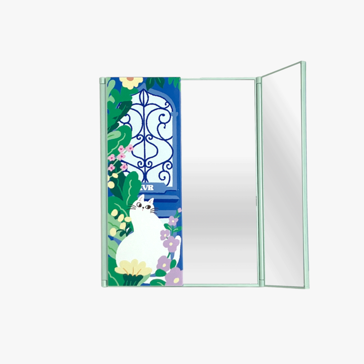 3면 거울로 다양한 각도에서 사물을 볼 수 있고 접이식으로 휴대하기 편리한 3단 접이식 탁상거울입니다.