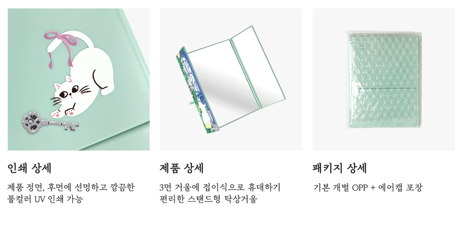 | 3단 접이식 탁상거울 | 120 x 153 mm (펼쳤을 때: 230 x 153 mm) | 템플릿 참고 |