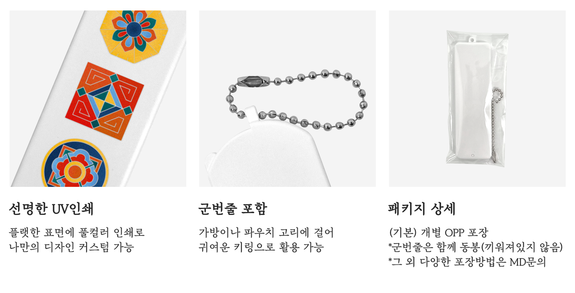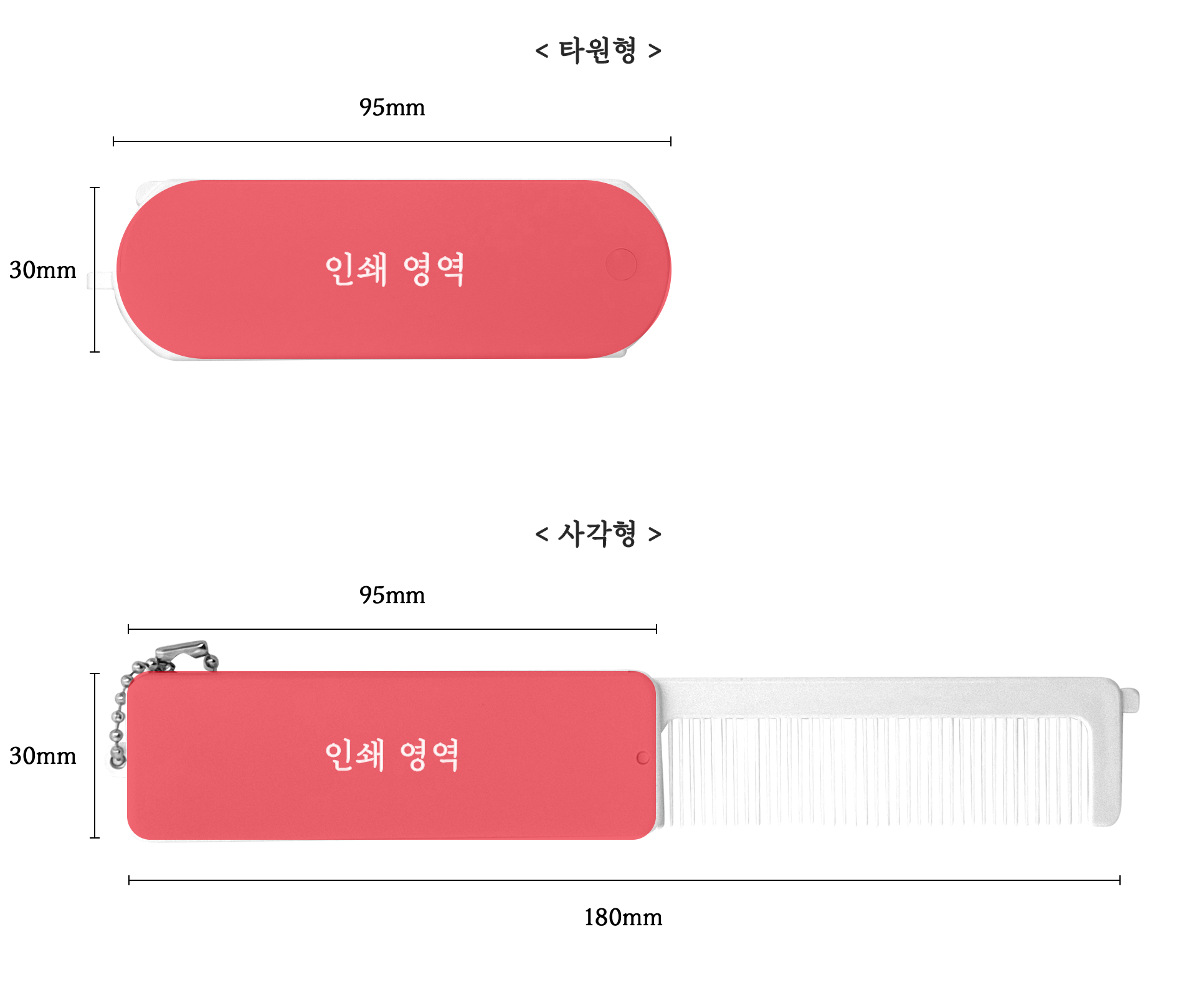 | 미니 거울빗 키링 | 95 x 30 mm (펼쳤을때) 180 x 30 mm | 95 x 30 mm 이내 |