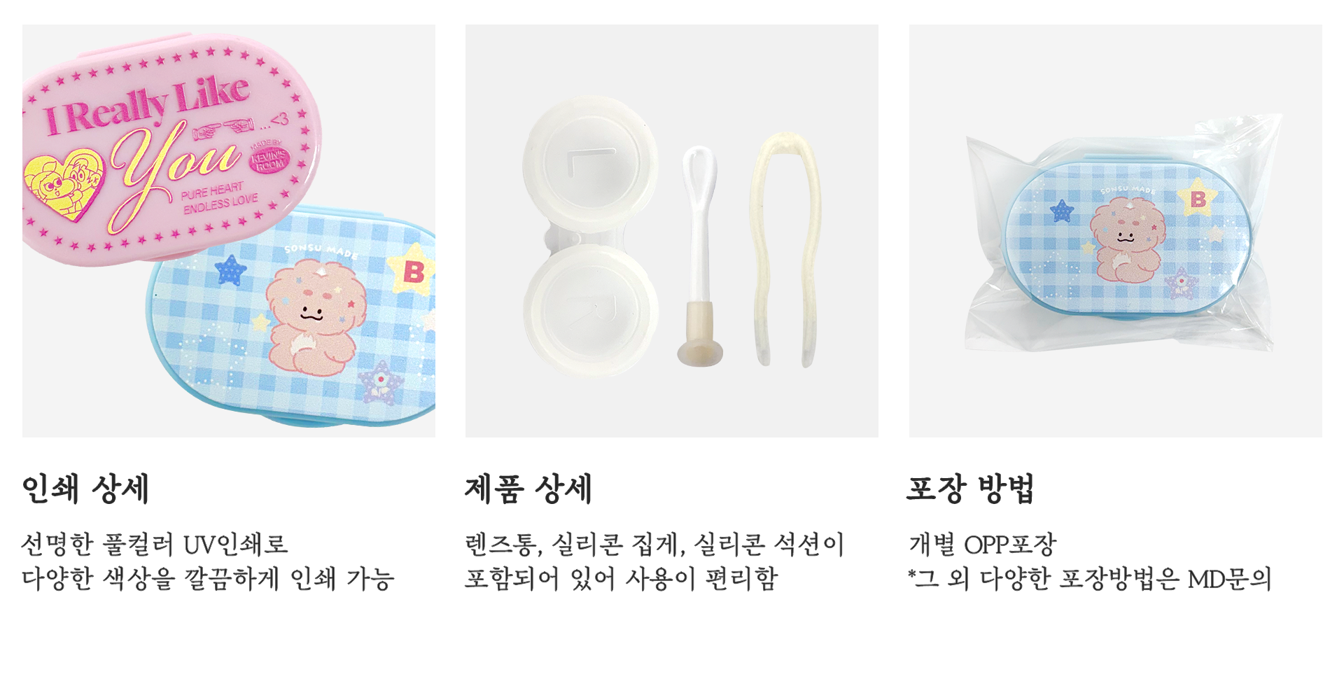 렌즈 케이스로 브랜드 굿즈를 제작해 보세요.