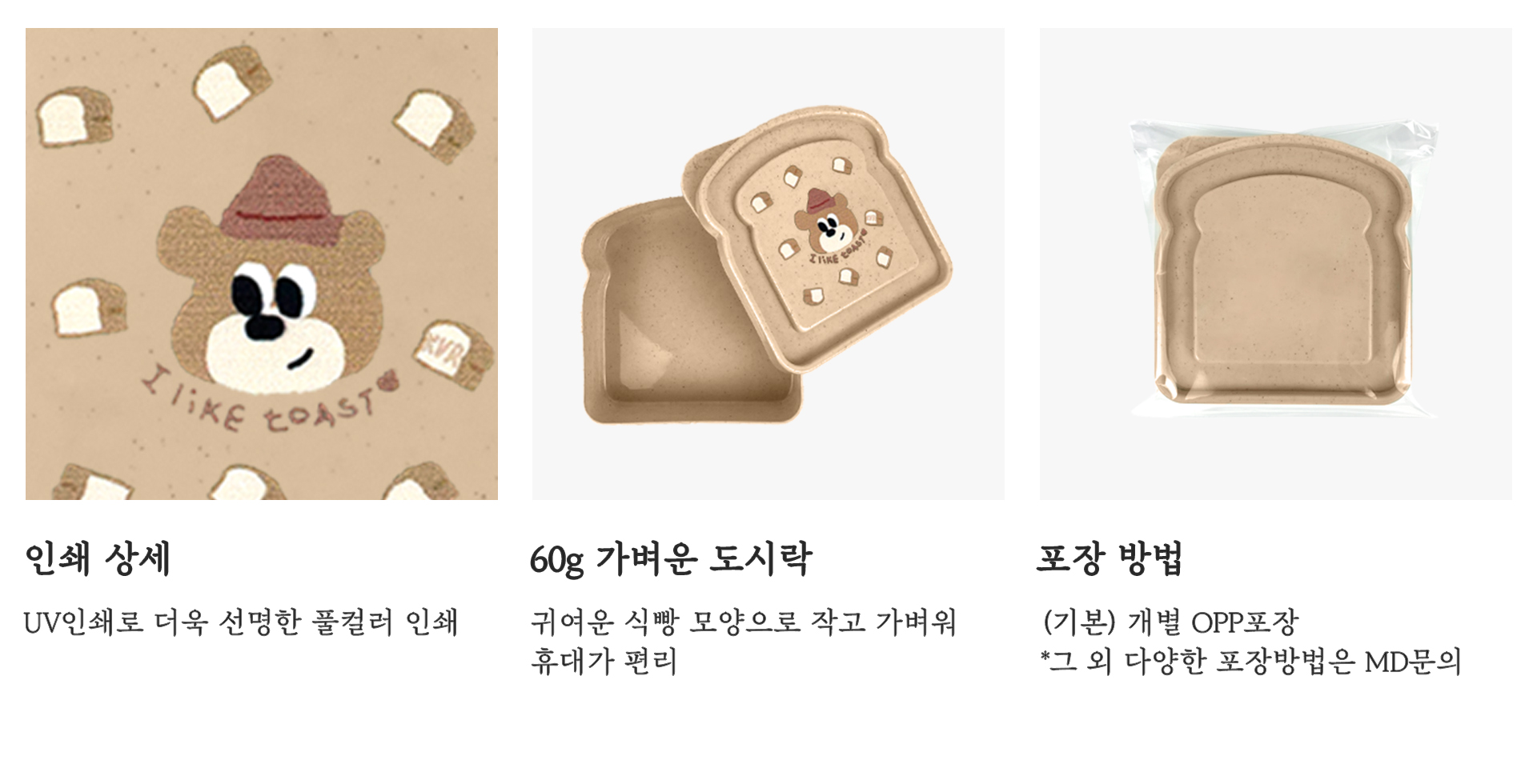 귀여운 식빵 모양의 런치박스로 작은 사이즈라 어디든 넣어 다닐 수 있고, 60g의 가벼운 무게로 휴대하기 좋습니다.