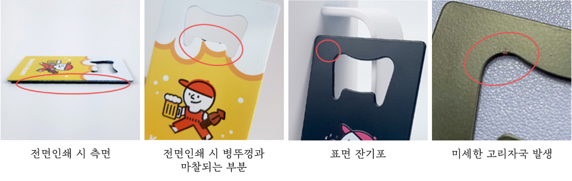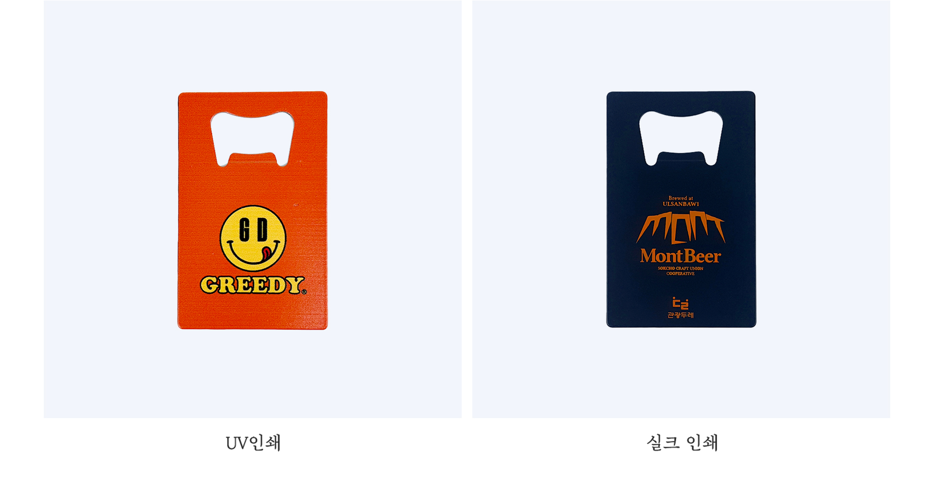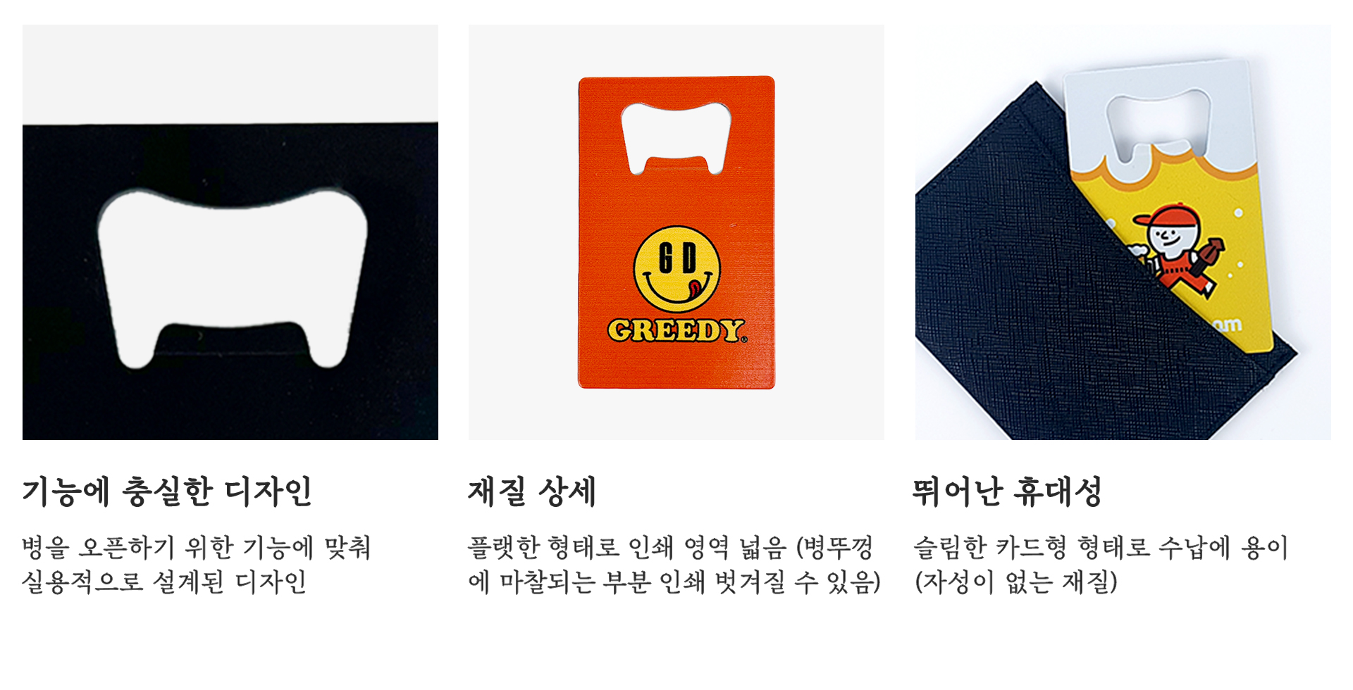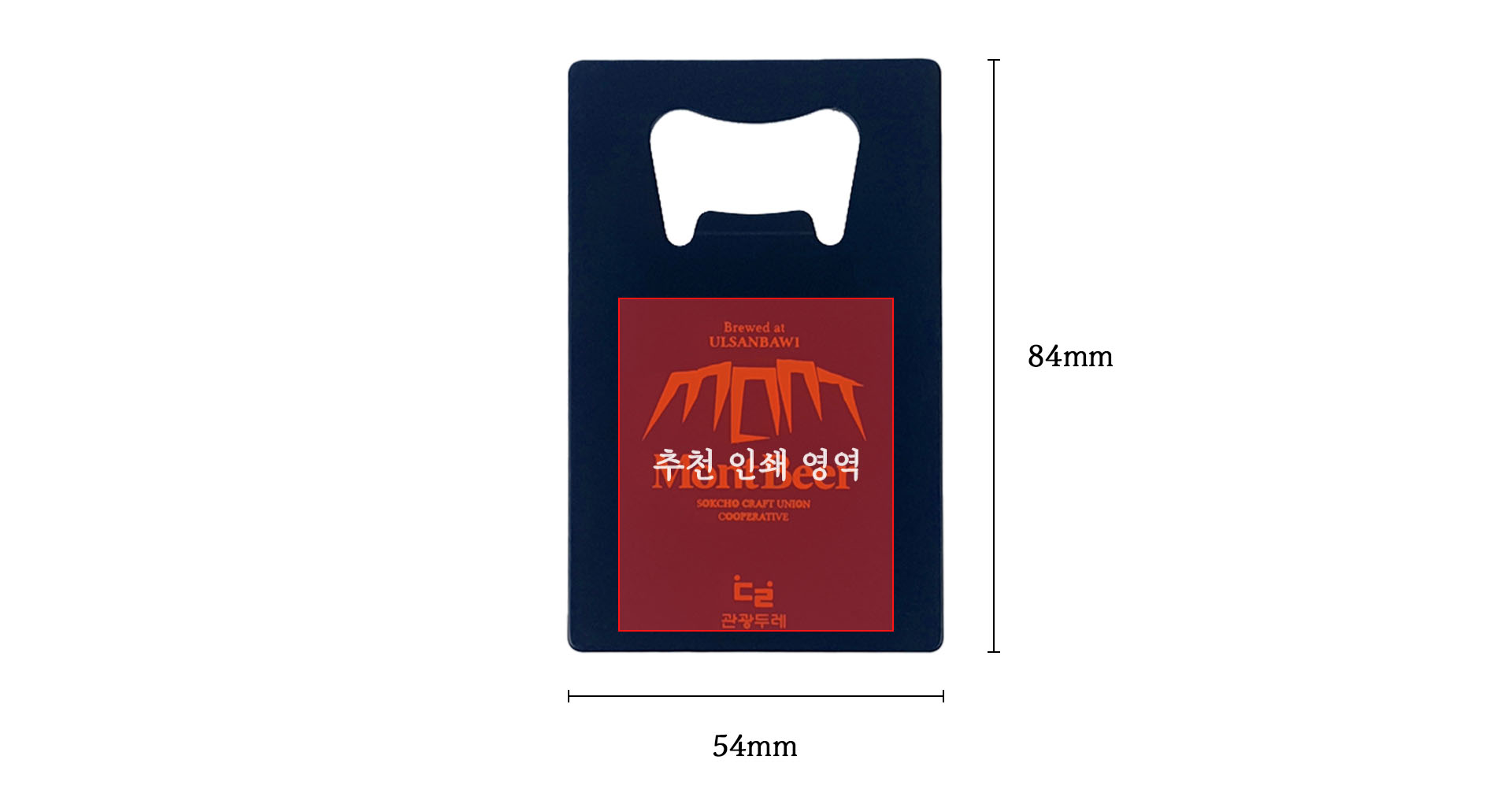 | 카드형 메탈 병따개 | 54 x 84 mm | 34 x 42 mm (전면인쇄 가능) |