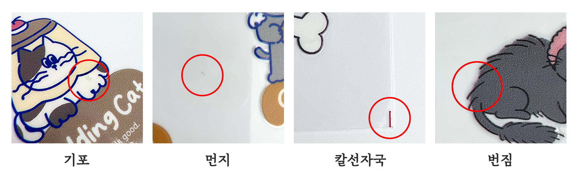 ※ 인쇄 선명도를 위하여 화이트 인쇄 후 컬러 인쇄를 진행하며, 인쇄 밀림 오차로 흰 테두리가 미세하게 비치는 현상이 있을 수 있습니다.