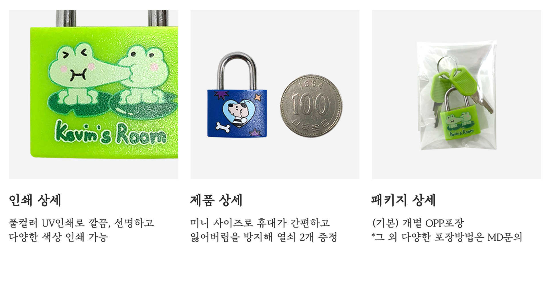 다양한 색상의 자물쇠에 풀컬러로 나만의 디자인을 인쇄할 수 있어요.