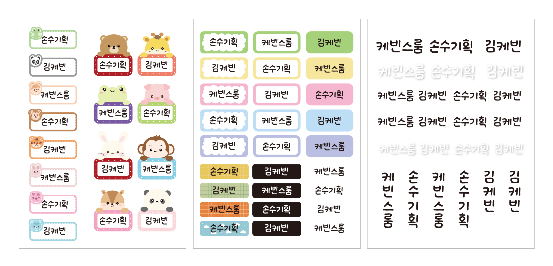 3가지 구성으로 되어있어 다양하게 인쇄 가능하고 어디든 사용 가능한 방수 네임 스티커입니다.