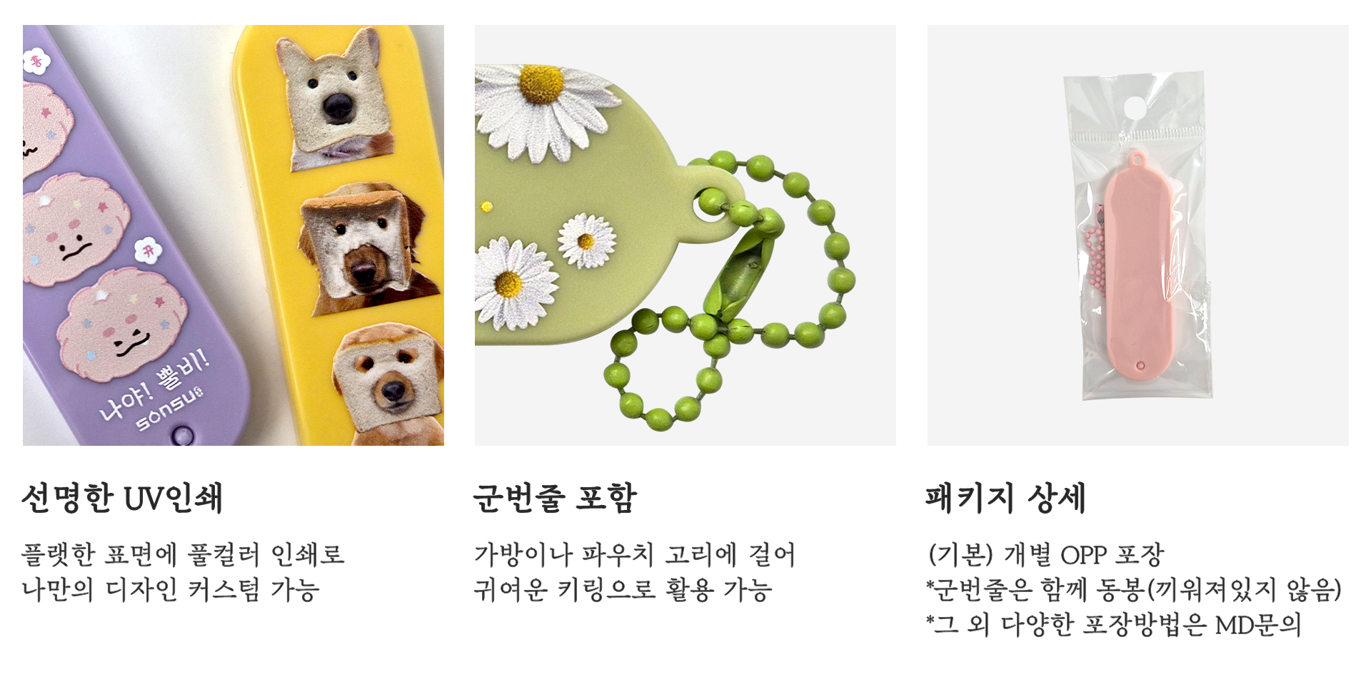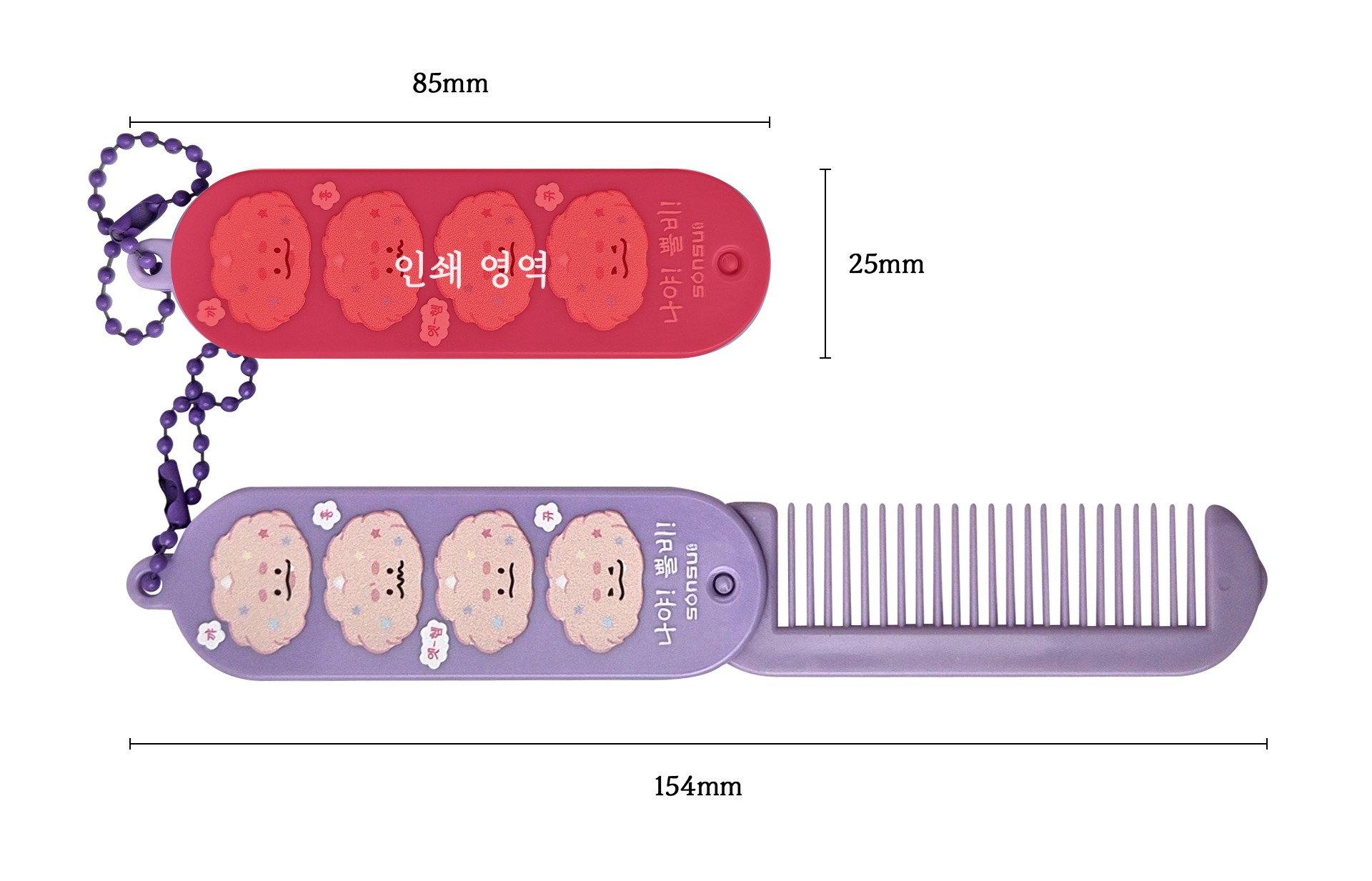 | 미니 헤어빗 키링 | 85 x 25 mm (펼쳤을때) 154 x 25 mm | 79 x 25 mm 이내 |